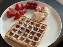 Modern und ansprechend: „Belgische Waffeln neu interpretiert: Mit diesem Rezept zauberst du fluffige Waffeln, die perfekt zu frischen Früchten, Schlagsahne und einer Kugel Eis passen.“