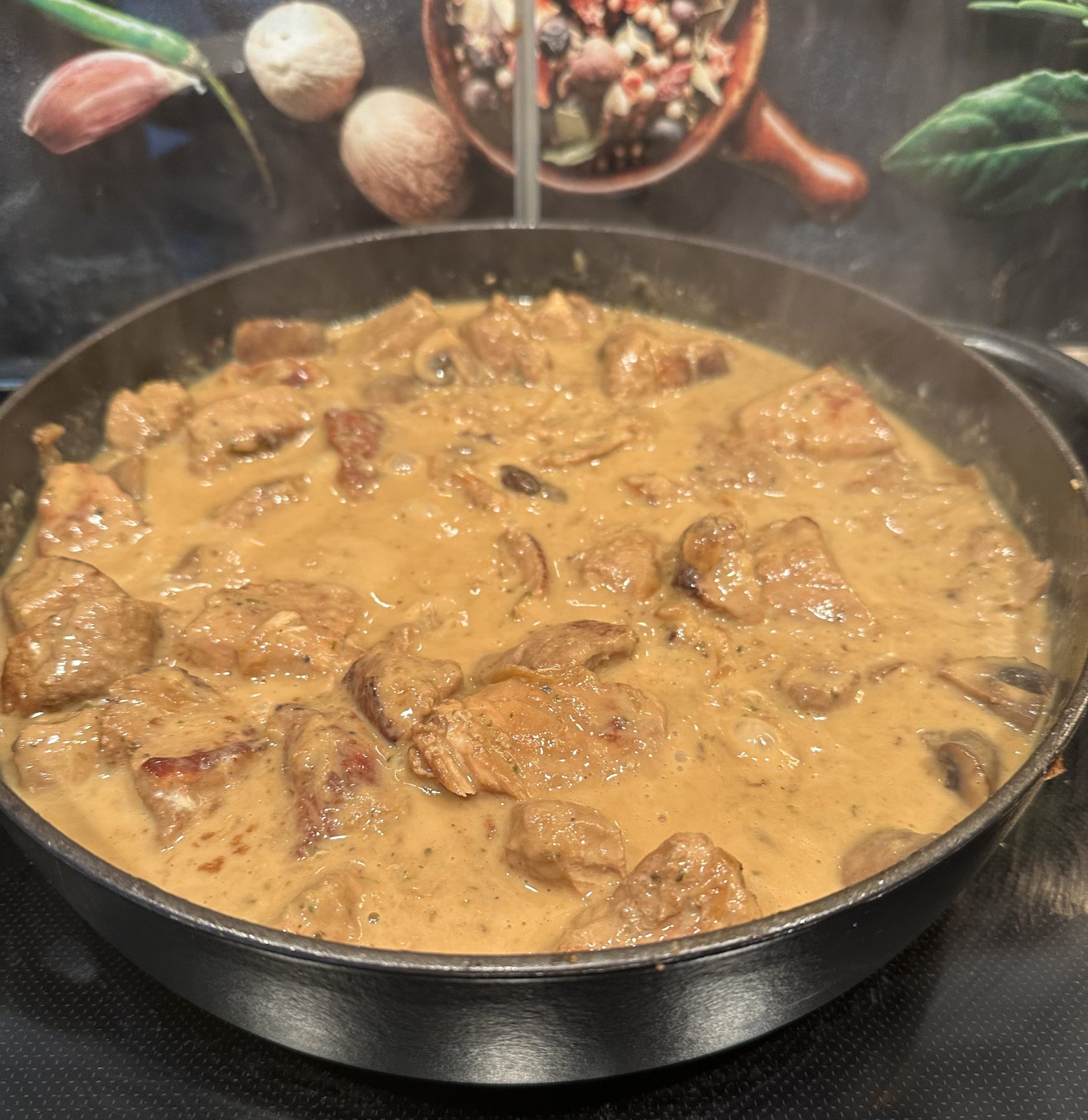 - Nach der Stunde mit Salz & Pfeffer und n.B. etwas mehr von den anderen Gewürzen abschmecken und n.B. Sahne/ Brühe oder etwas Wasser hinzufügen (für mehr Sauce, wenn gewünscht) – Lasst es euch schmecken!