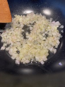 Zwiebel & Knoblauch schälen und klein hacken (bzw. Knoblauch pressen)