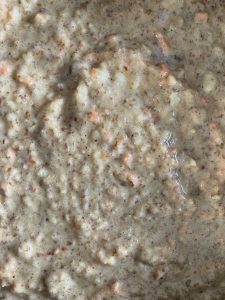Möhren und Apfel schälen, grob raspeln und mit der Prise Bourbon Vanille zu der Masse geben und vermischen