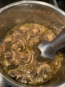 Man kann auch 50 g mehr Champignons nehmen und diese nach dem anbraten als Einlage verwenden. Die Suppe schmeckt super zu etwas frisch aufgebackenem Brot mit Kräuterbutter.