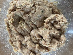 Alle Zutaten für die Frikadellen in eine Schüssel oder ein Rührgerät geben und gut durchmischen