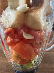 Alle Zutaten zu der Gurke in den Mixer geben, Wasser und Olivenöl drüber gießen, mit Salz und Pfeffer würzen und 2-5 Min pürieren (Erstmal mit 50 ml Wasser beginnen, wenn es euch noch zu dickflüssig ist n.B. mehr hinzufügen)